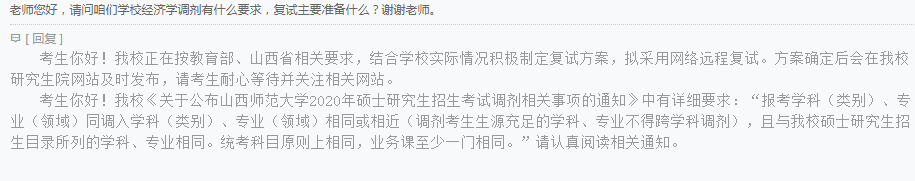 以上就是小編整理的“山西師范大學”相關考研內容,更多關于“2020考研復試網上咨詢”的內容,盡在“考研動態”欄目,也可關注研線網微信公眾號,第一時間獲取有效信息。