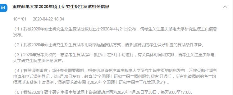 問:重慶郵電大學2020年碩士研究生招生復試相關信息
