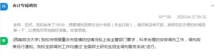 (西南政法大學) 我校將根據重慶市疫情防控情況和上級主管部門要求,科學合理的安排調劑工作,調劑政策另行通知。我校全部調劑工作均通過“全國碩士研究生招生調劑服務系統”進行。