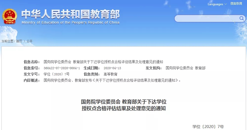 近日,教育部官網發布了《國務院學位委員會教育部關于下達學位授權點合格評估結果及處理意見的通知》。21考生們看過來,你們想要報考的專業可能會被撤銷或暫停招生!