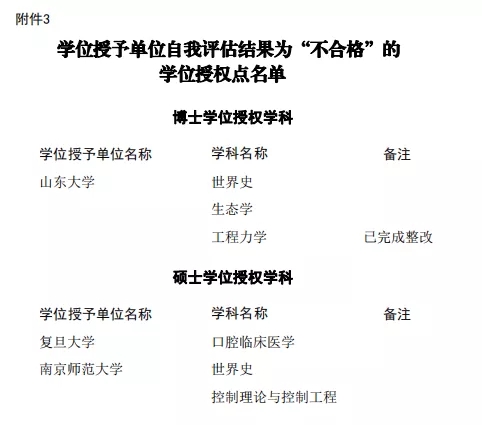 抽評結果為“不合格”的學位授權點,以及未開展自我評估的學位授權點,自發文之日起撤銷學位授權,5年之內不得重新申請。2020年招生工作結束后不得招生,在學研究生按原渠道培養、授予學位。這些學位授權點如下: