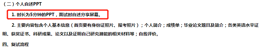 根據以往的經驗,復試需要準備自我介紹。但是今年有了新的變化,部分院校要求學生準備1000-3000字的自傳或時長5分鐘的PPT。