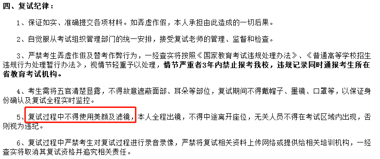 天津大學要求復試過程中不得使用美顏及濾鏡。