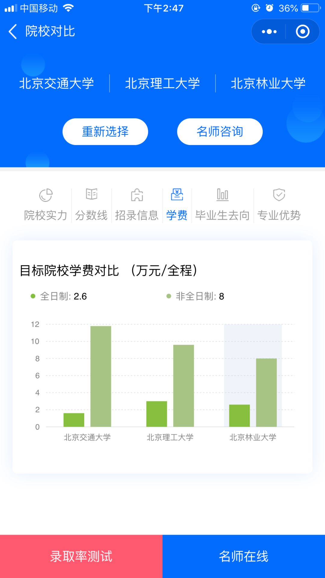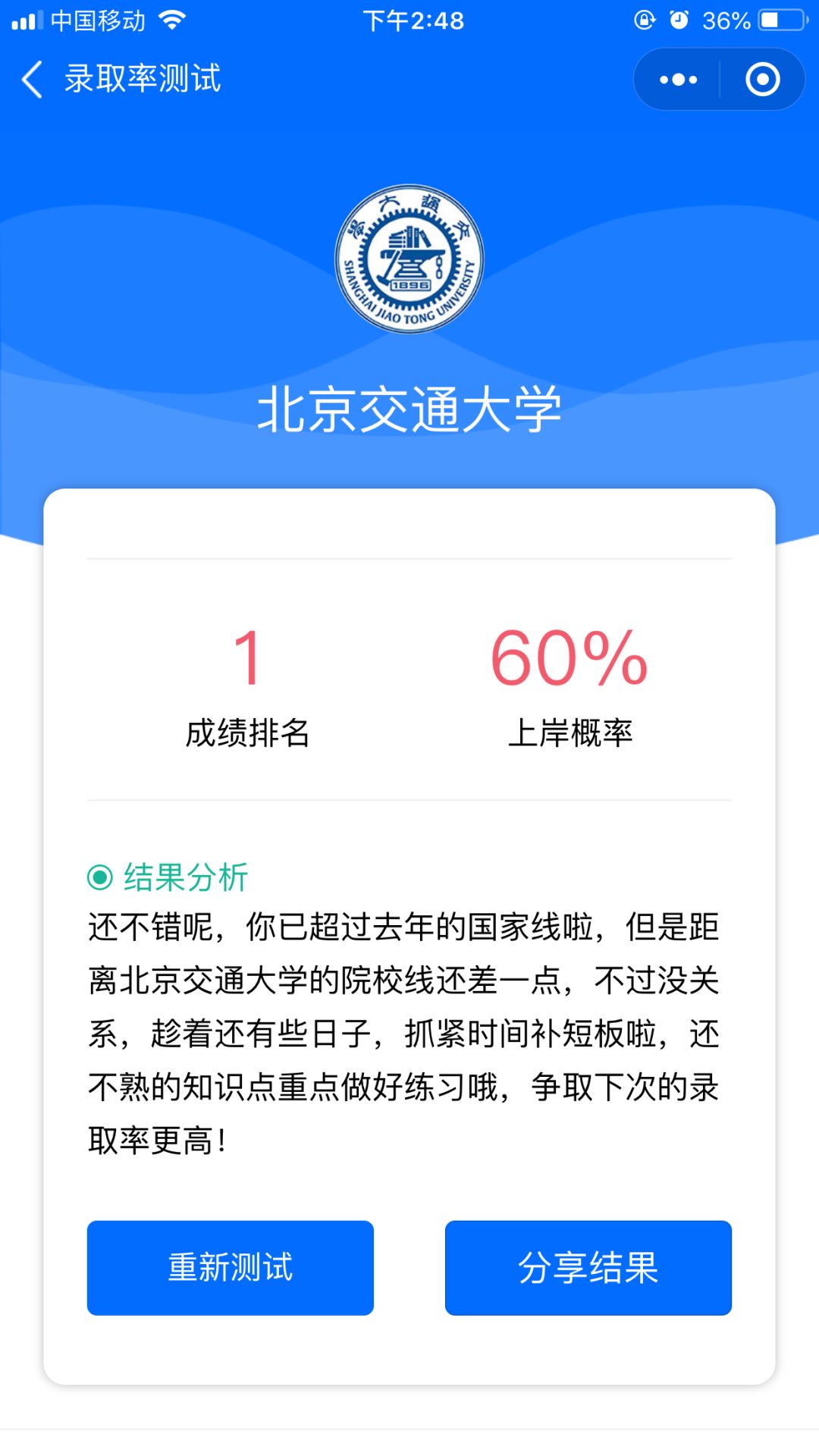 亮點四:錄取率測試,確定了目標院校,接下來就要知道與目標院校的差距有多少了!