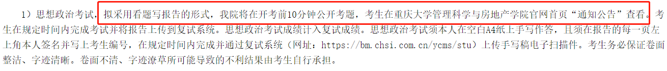 擬采用開題報考的形式,我院將于開考前10分鐘公開考題,考生可在管理科學與房地產學院的“通知公告”中可以查看。