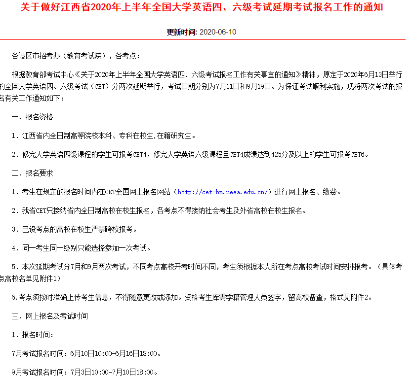 以上就是“2020年半年大學(xué)英語四六級考試筆試與口語考試具體時間安排”的全部內(nèi)容!祝同學(xué)們大學(xué)英語四六級考試順利過線!
