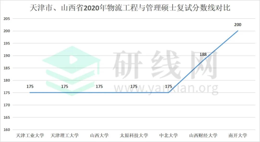 通過上面的數據我們可以看出,天津市、山西省大部分院校的2020年物流工程與管理專業碩士復試分數線的分數保持在175分,這也恰恰符合物流工程與管理第一年招生的特點。