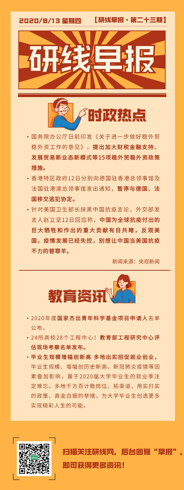 【研線早報·第二十三期】2020年08月13日
