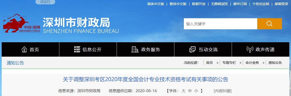 關于調整深圳考區2020年度全國會計專業技術資格考試有關事項的公告