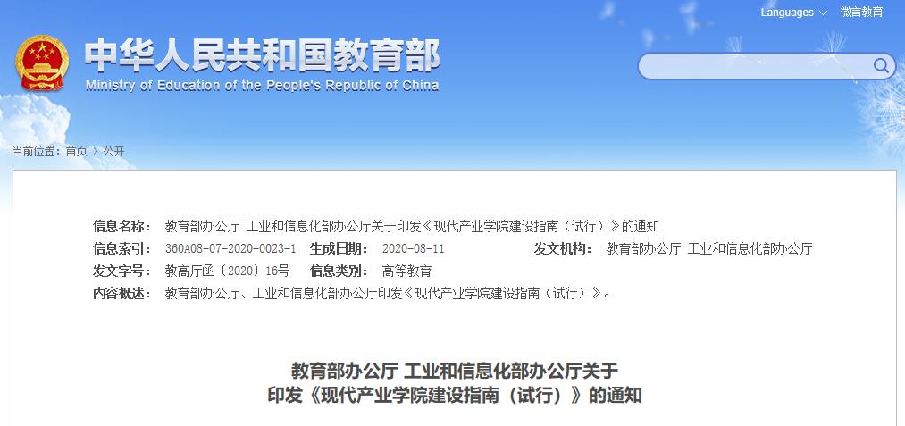 以上就是《教育部辦公廳 工業和信息化部辦公廳關于印發《現代產業學院建設指南(試行)》的通知》全部內容,更多資訊盡在研線網!