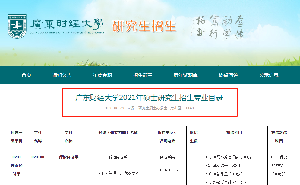 廣東財(cái)經(jīng)大學(xué)公布2021年碩士研究生招生專業(yè)目錄。