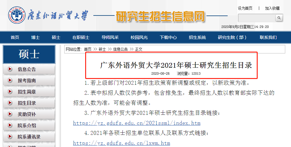 廣東外語外貿(mào)大學(xué)公布2021年碩士研究生招生目錄。