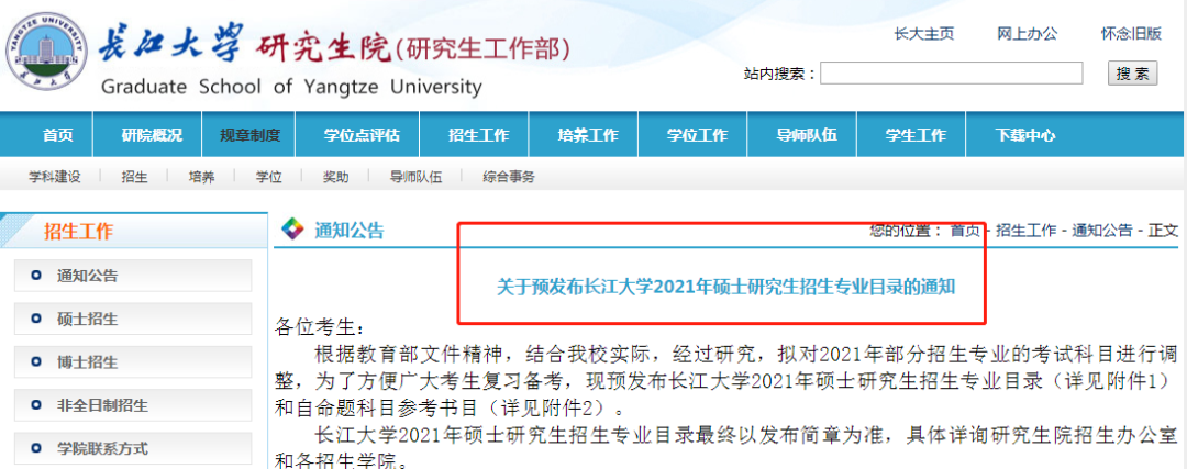 長江大學(xué)發(fā)布《關(guān)于預(yù)發(fā)布長江大學(xué)2021年碩士研究生招生專業(yè)目錄的通知》