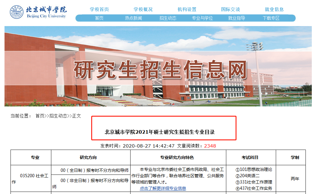 北京城市學(xué)院公布2021年碩士研究生專業(yè)目錄。