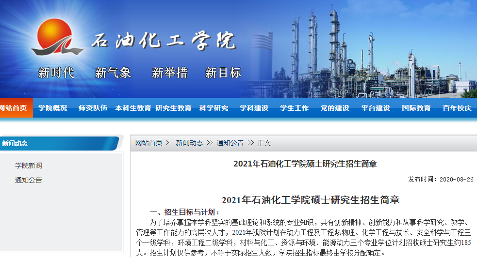 蘭州理工大學(xué)石油化工學(xué)院公布2021年碩士研究生招生簡章。