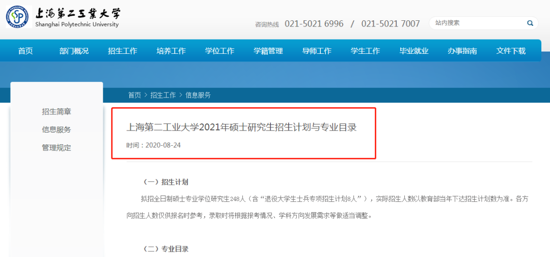 上海第二工業(yè)大學(xué)公布2021年碩士研究生招生計(jì)劃與專業(yè)目錄。
