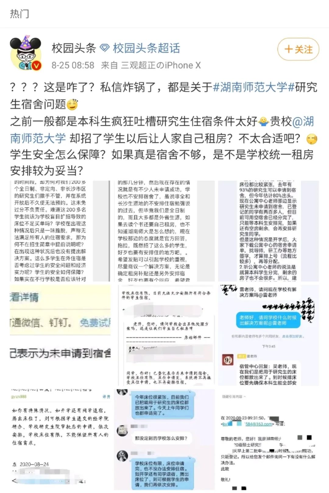 湖南師范大學(xué)研究生宿舍床位緊張,部分研究生未申請到床位,就此事向微博博主投稿,表示校方用“官方的回答了他的廢話”,希望能夠得到實(shí)際的解決。
