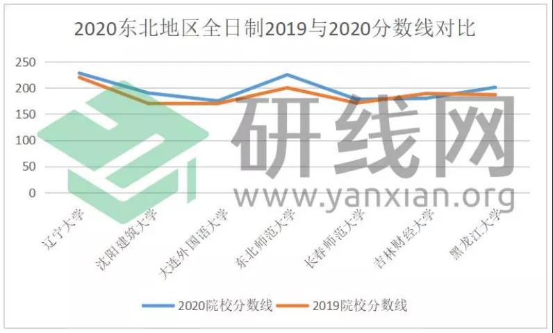 如上圖所示,東北地區全日制2020與2019分數線相比較,其中只有吉林財經大學分數線有所下降,剩余院校都有所提高,其中沈陽建筑大學 2020年圖書情報碩士全日制分數線較2019年分數線提高20 分、東北師范大學2020年圖書情報碩士全日制分數線較2019年分數線提高25分。總體來說,東北地區各院校2020年分數線較2019年分數線有所提高。