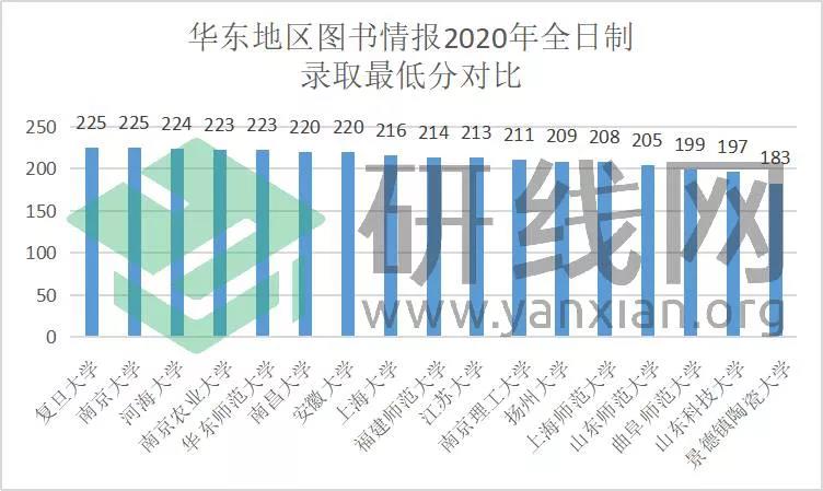 研線網整理華東地區圖情(全日制)錄取最低分對比
