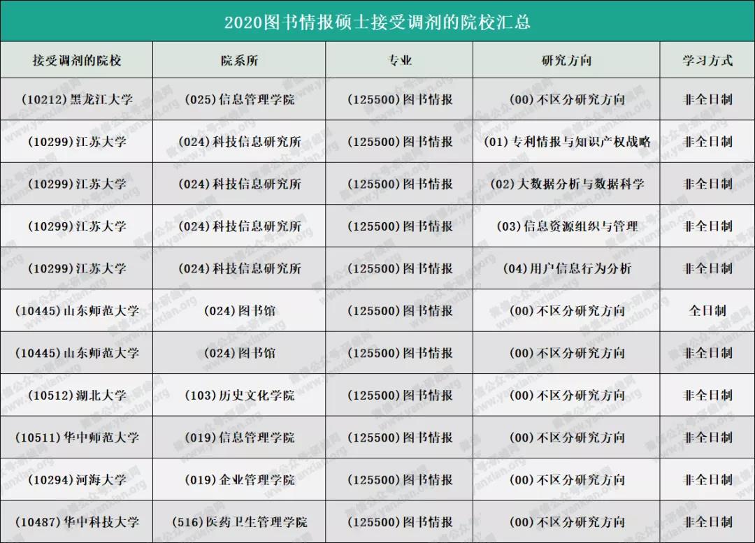 研線網整理2020年圖情碩士接受調劑院校匯總