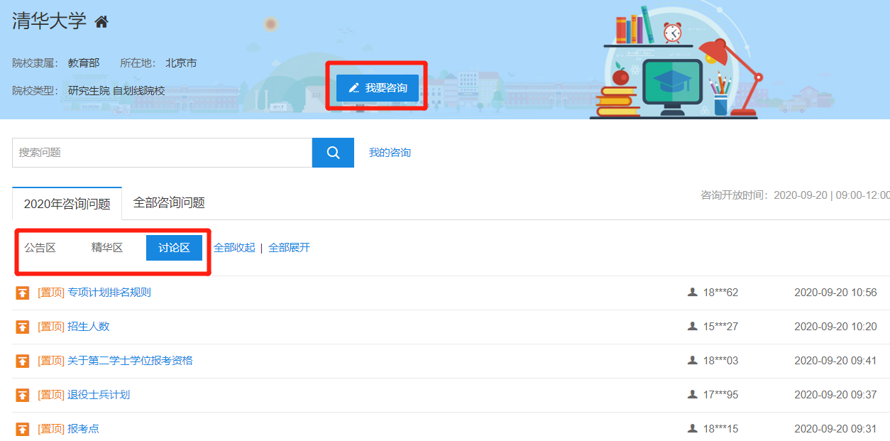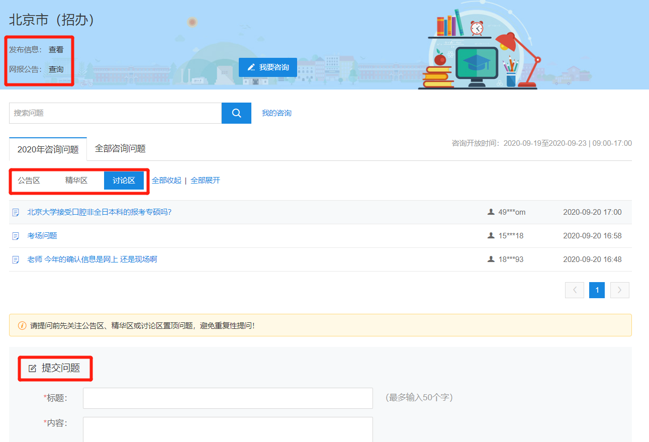 3、咨詢前,可查看各省市招辦及院校公告、已咨詢問題等,避免重復性提問。