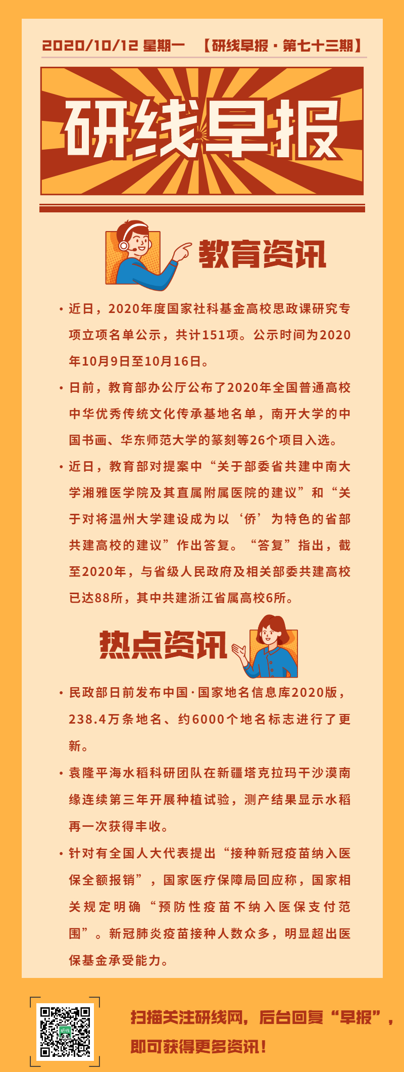 ?近日,2020年度國家社科基金高校思政課研究專項立項名單公示,共計151項。公示時間為2020年10月9日至10月16日。
