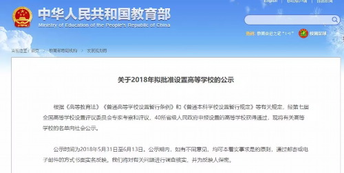 2018年擬批準(zhǔn)設(shè)置高等學(xué)校名單公示,40所高?;?qū)⒏拿?/h4>