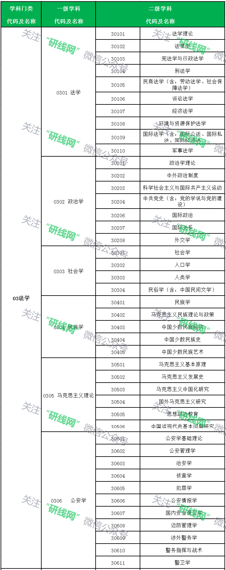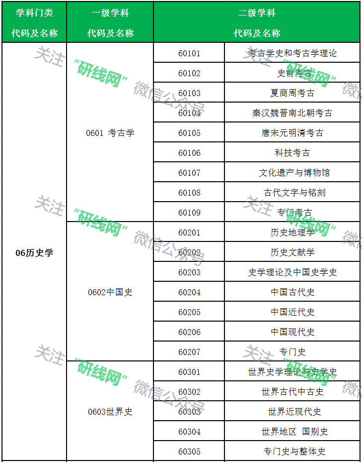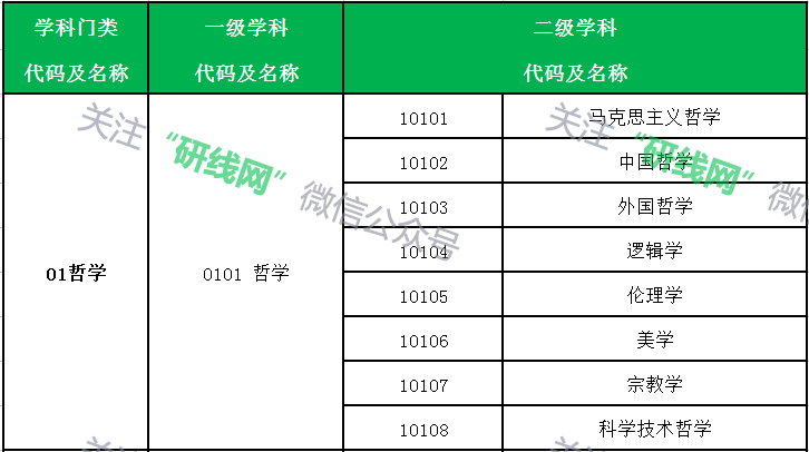 01哲學、02經濟學、03法學、04教育學、05文學、06歷史學、07理學、08工學、09農學、10醫學、11軍事學、12管理學、13藝術學;