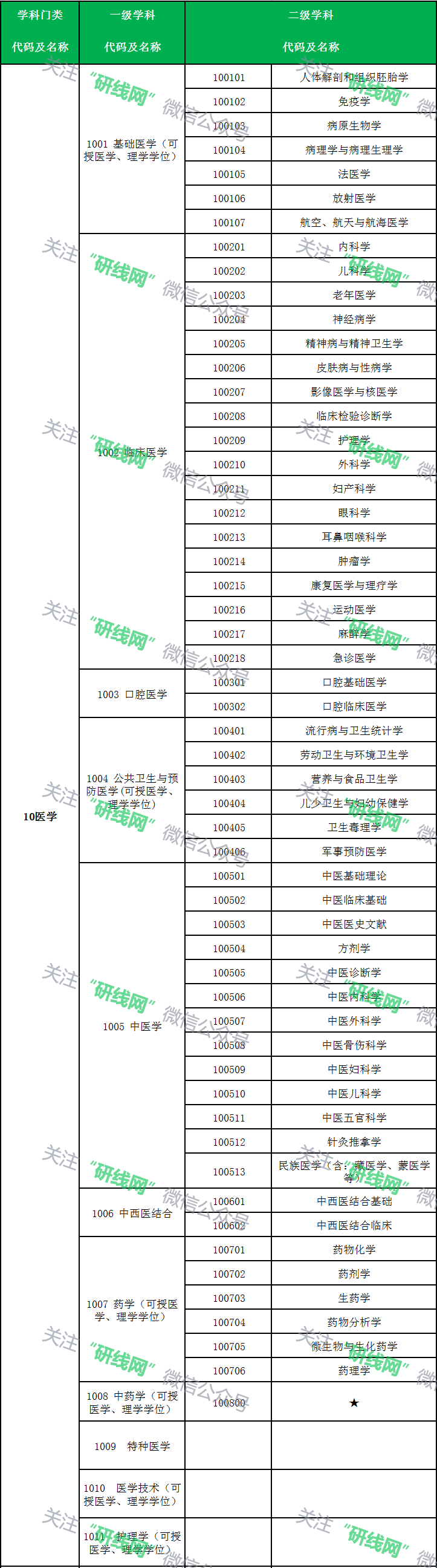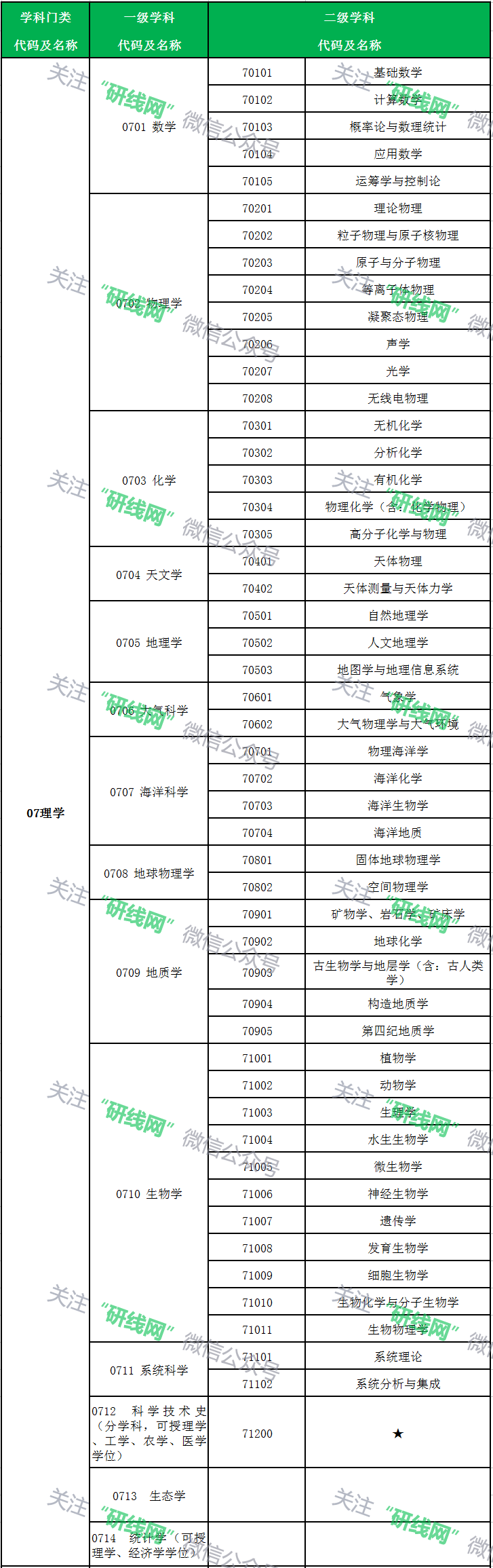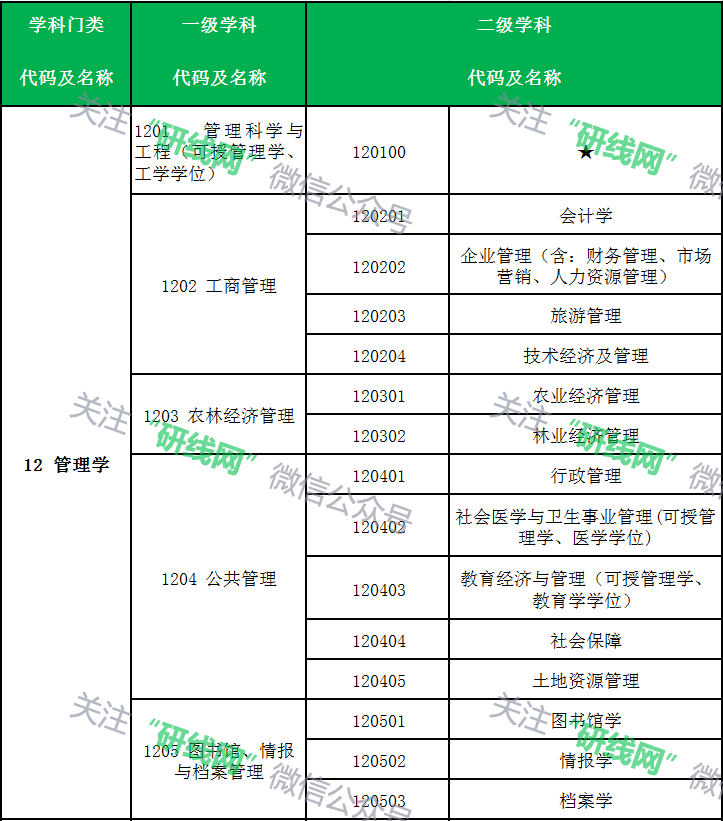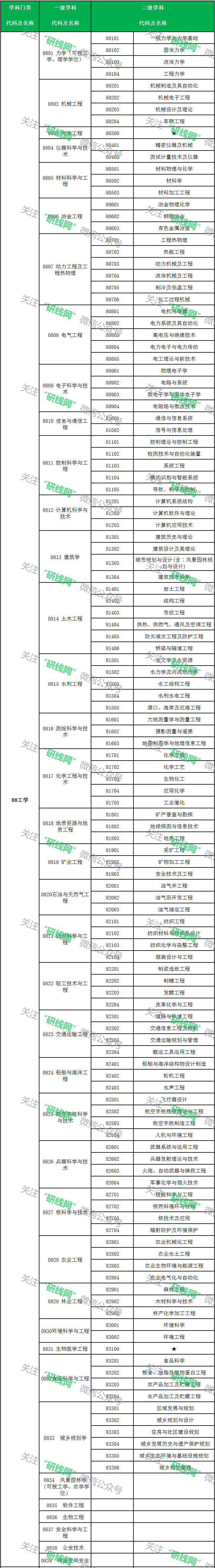 注:二級學科名稱為“★”的,表示該一級學科不分設二級學科(學科、專業)。以上目錄為研究生招生的基礎專業,不包含自設專業、交叉學科等特殊專業。