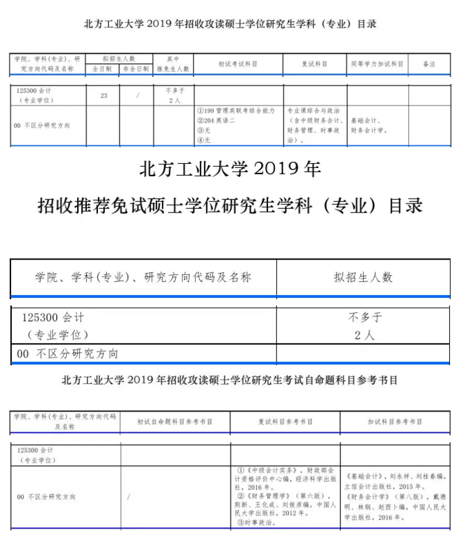 2019年北方工業(yè)大學(xué)MPAcc計劃招生人數(shù):全日制23人,其中推免生不多于2人。