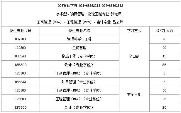 2019年武漢科技大學(xué)MPAcc計劃招生人數(shù):全日制25人,非全日制20人。