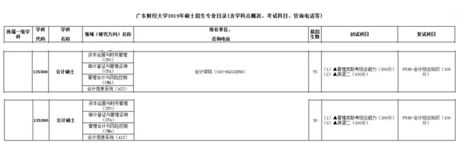 2019年廣東財經(jīng)大學(xué)MPAcc計劃招生人數(shù):會計學(xué)院70人,佛山研究生院30人。