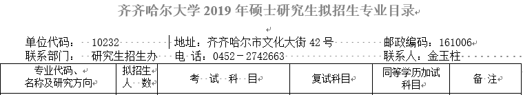 注:圖片來源于齊齊哈爾大學(xué)2019年碩士研究生招生專業(yè)目錄