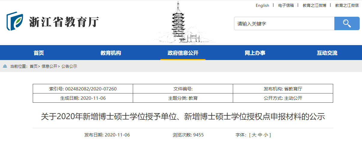小編整理了“2020碩士新增學位點:浙江省關于2020年新增博士碩士學位授予單位、新增博士碩士學位授權點申報材料的公示”的內容,請大家及時關注教育部通知。