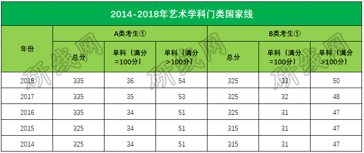 2014-2018年藝術(shù)學(xué)學(xué)科門類國家線: