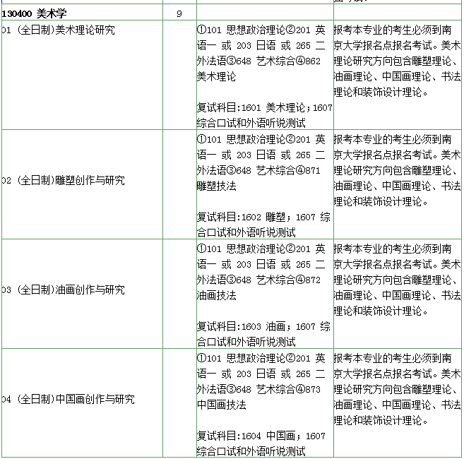 藝術(shù)學(xué)學(xué)科門類考試科目:初試考試科目一般為政治、外語、專業(yè)課。專業(yè)課:專業(yè)一(一般考理論基礎(chǔ));專業(yè)二(一般考你所報(bào)考的方向的基礎(chǔ)知識)。以南京大學(xué)為例: