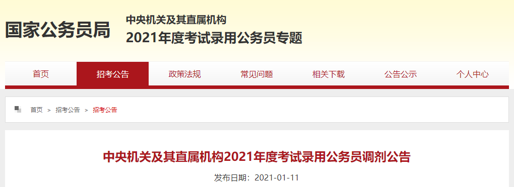 1月11日,國家公務(wù)員局發(fā)布“中央機關(guān)及其直屬機構(gòu)2021年度考試錄用公務(wù)員調(diào)劑公告”,以下是原文內(nèi)容。