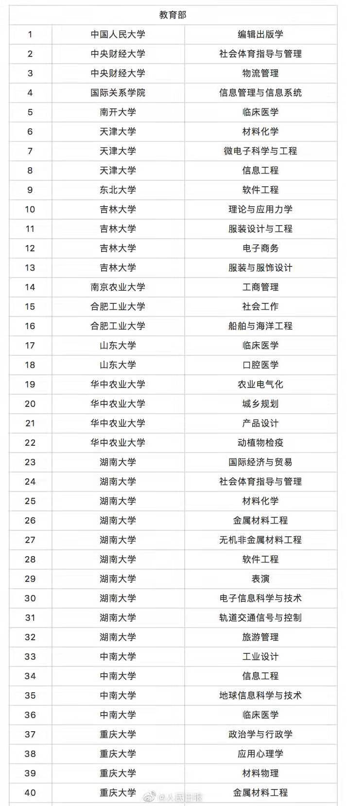 教育部公布2020年度普通高等學校本科專業備案和審批結果,根據高等學校專業設置與教學指導委員會評議結果,共撤銷中國人民大學編輯出版學、中央財經大學物流管理、南開大學臨床醫學等518個本科專業。