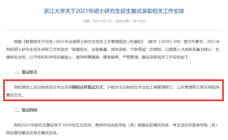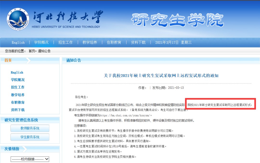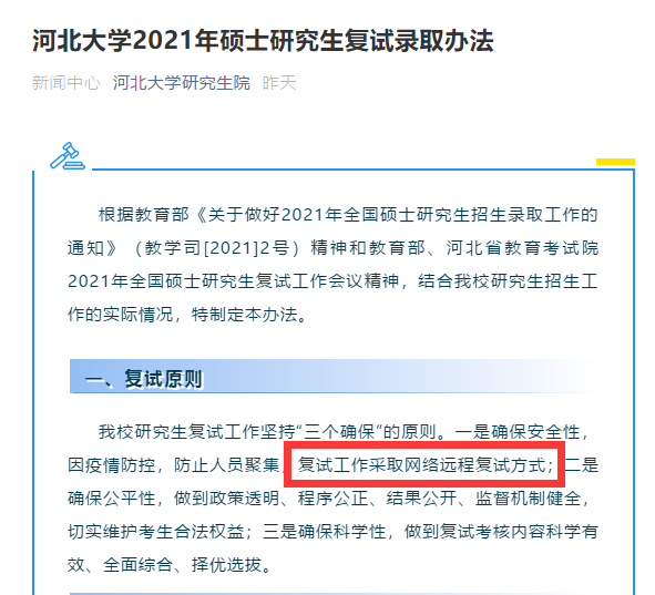 我校2021年碩士研究生復試采取網上遠程復試形式