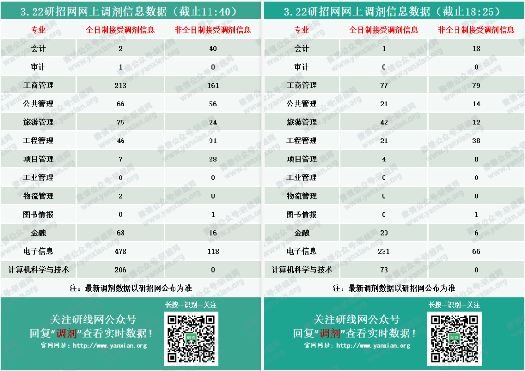 截止3月22日18:25,調劑信息有所變動!部分專業調劑名額減少一半以上。把握機會,調劑信息戰,一定要迅速!