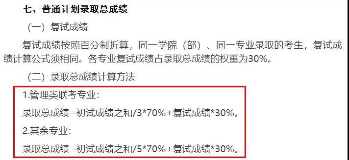 管理類聯考專業為錄取總成績=初試成績之和/3*70%+復試成績*30%。