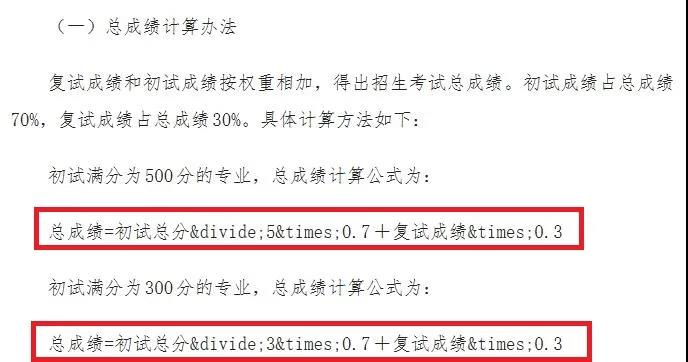 總成績=初試總分÷5×0.7+復試成績×0.3
