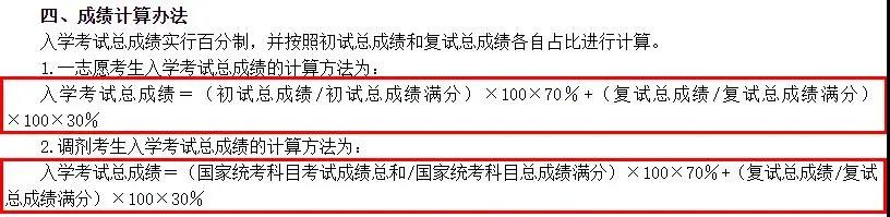入學考試總成績=(初試總成績/初試總成績滿分)×100×70%+(復試總成績/復試總成績滿分)×100×30%