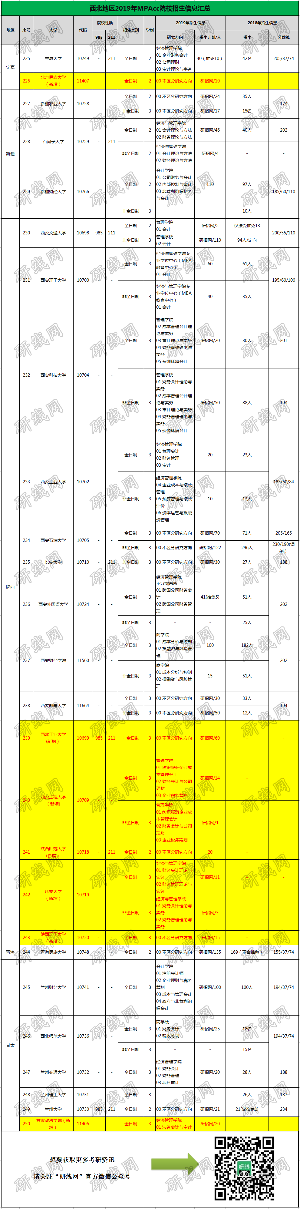 以上就是研線網整理匯總的2019會計專碩(MPAcc)東北、西北地區院校的招生信息,到這里,2019年會計專碩(MPAcc)各大地區院校招生信息匯總結束了。明天我們會將所有地區的院校招生信息整理匯總,敬請期待!