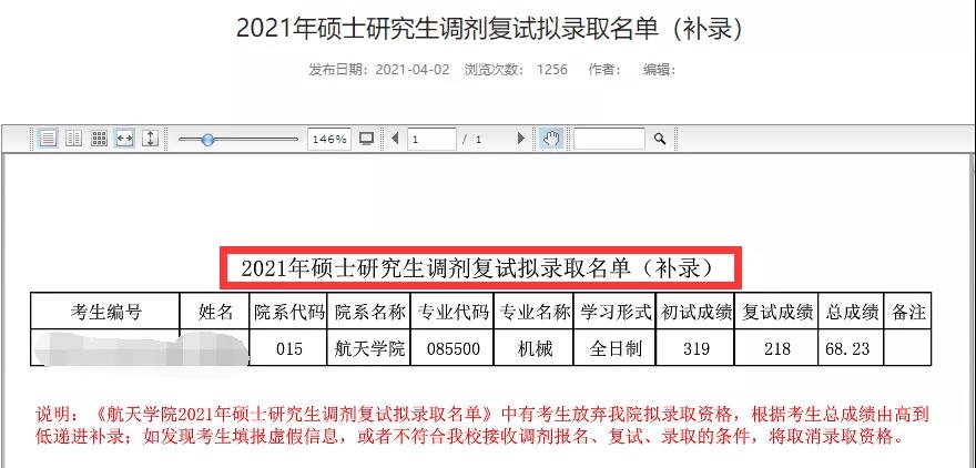 《航天學(xué)院2021年碩士研究生調(diào)劑復(fù)試擬錄取名單》中有考生放棄我院擬錄取資格,根據(jù)考生總成績(jī)由高到低遞進(jìn)補(bǔ)錄;如發(fā)現(xiàn)考生填報(bào)虛假信息,或者不符合我校接收調(diào)劑報(bào)名、復(fù)試、錄取的條件,將取消錄取資格。