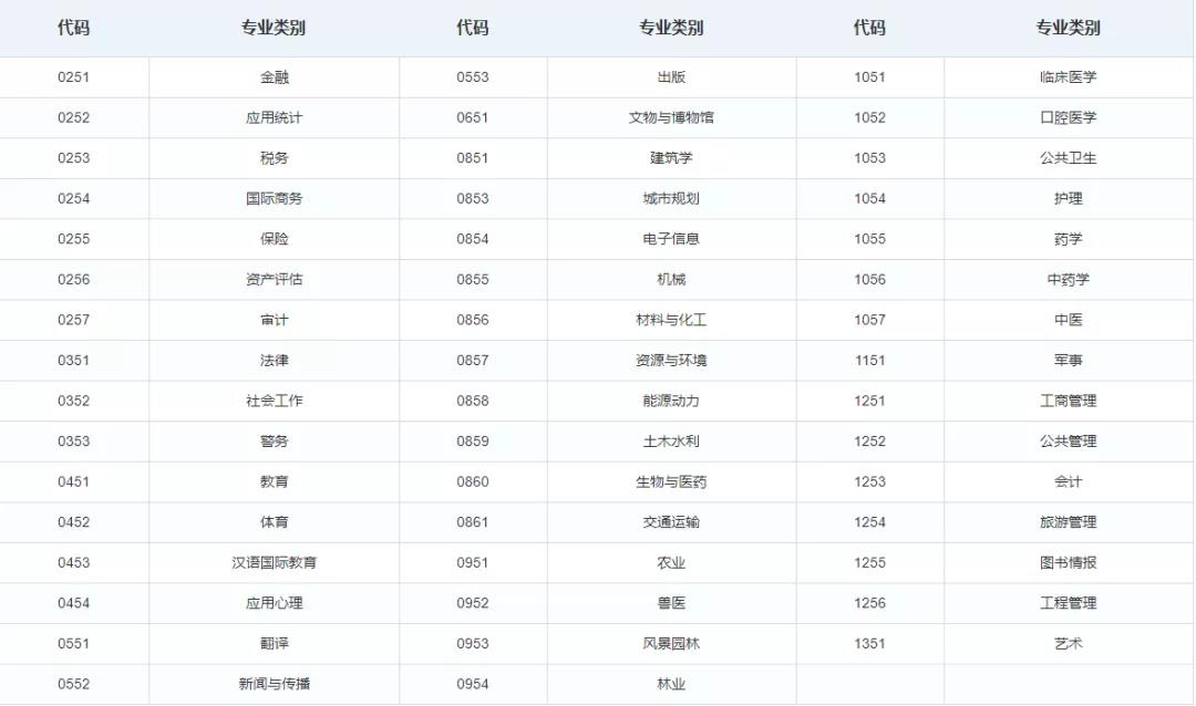 碩士研究生專業學位類別及代碼表