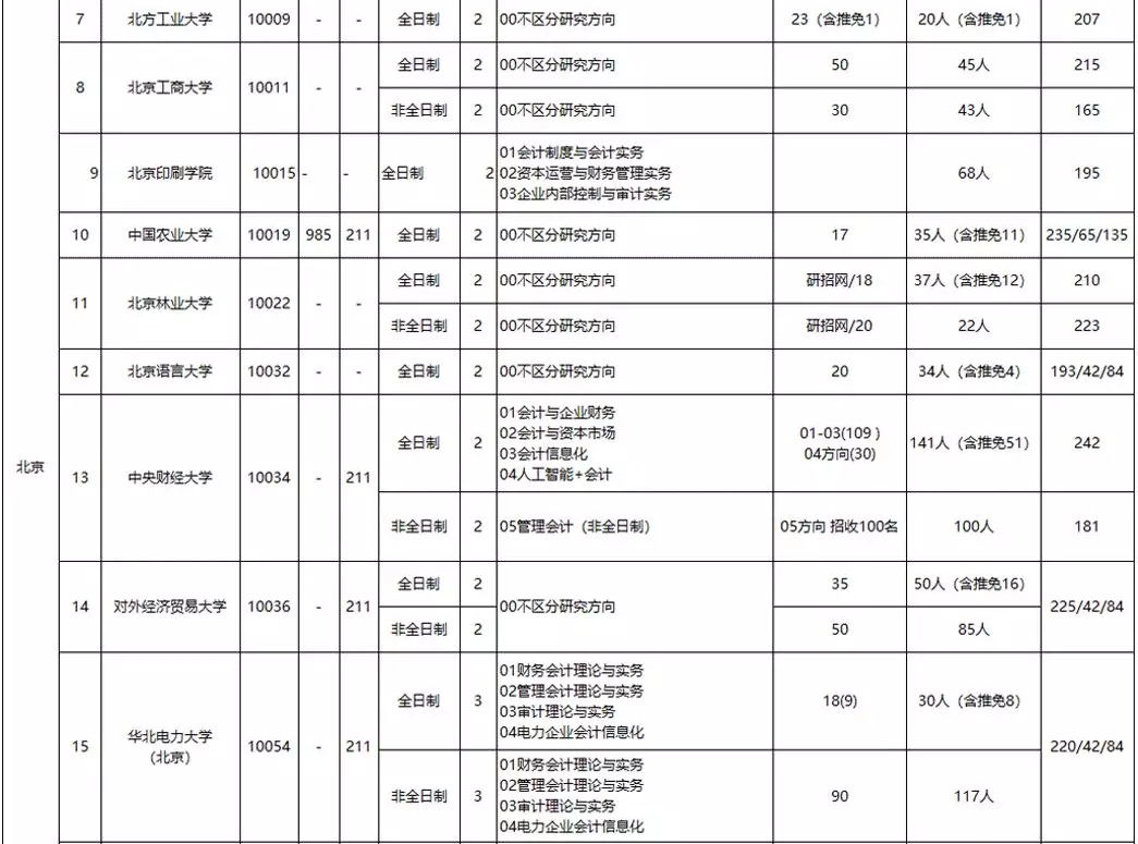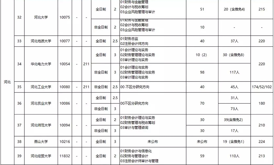 華北地區會計專碩(MPAcc)2019年院校招生信息匯總
