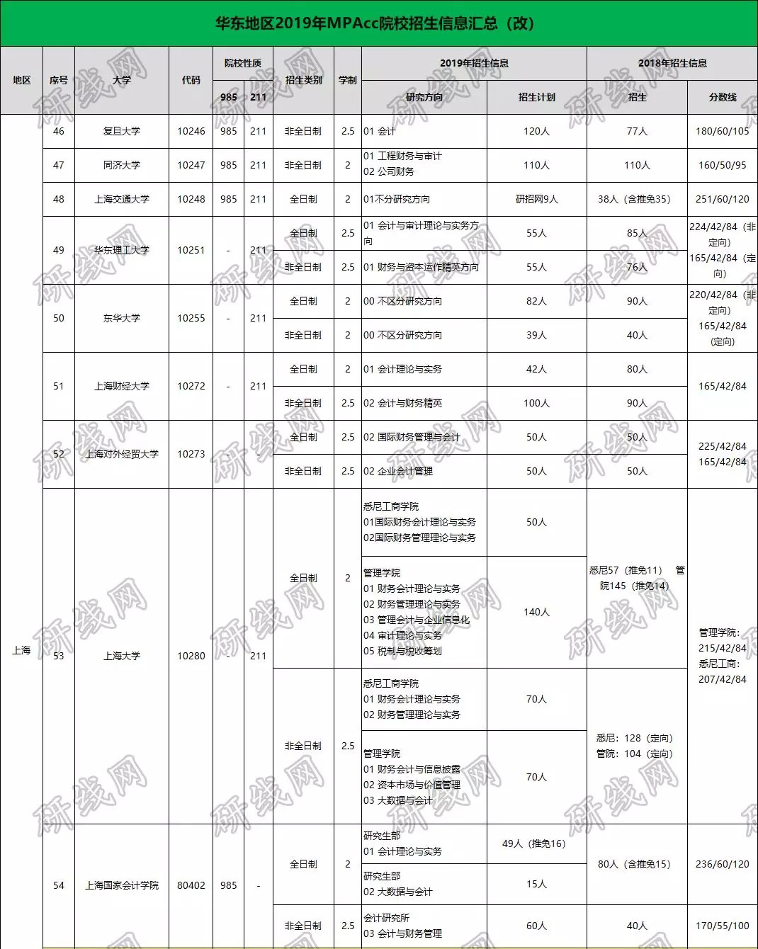 以上就是研線網(wǎng)整理匯總的2019會(huì)計(jì)專碩(MPAcc)華東地區(qū)院校的招生信息!
