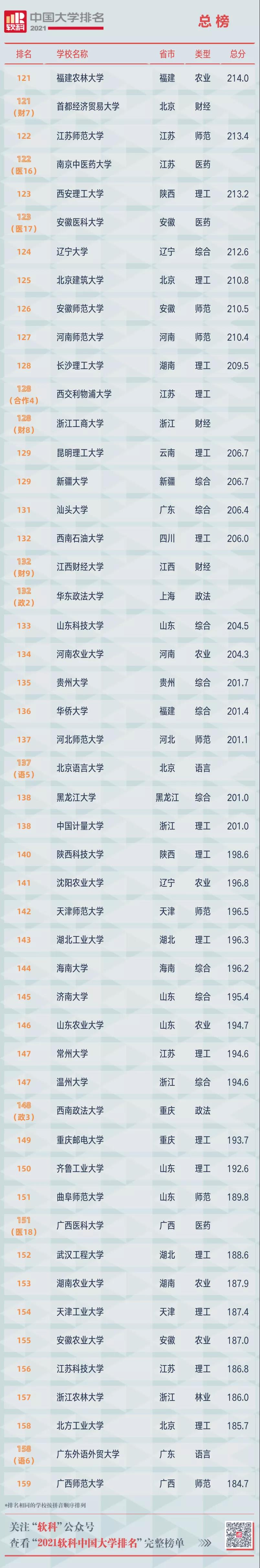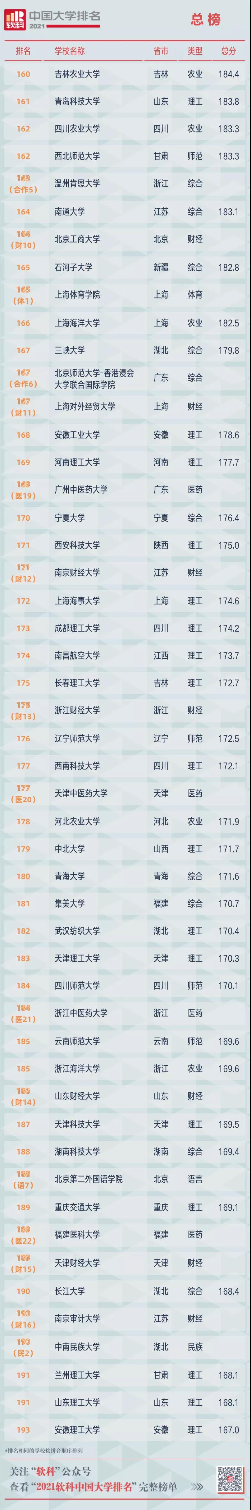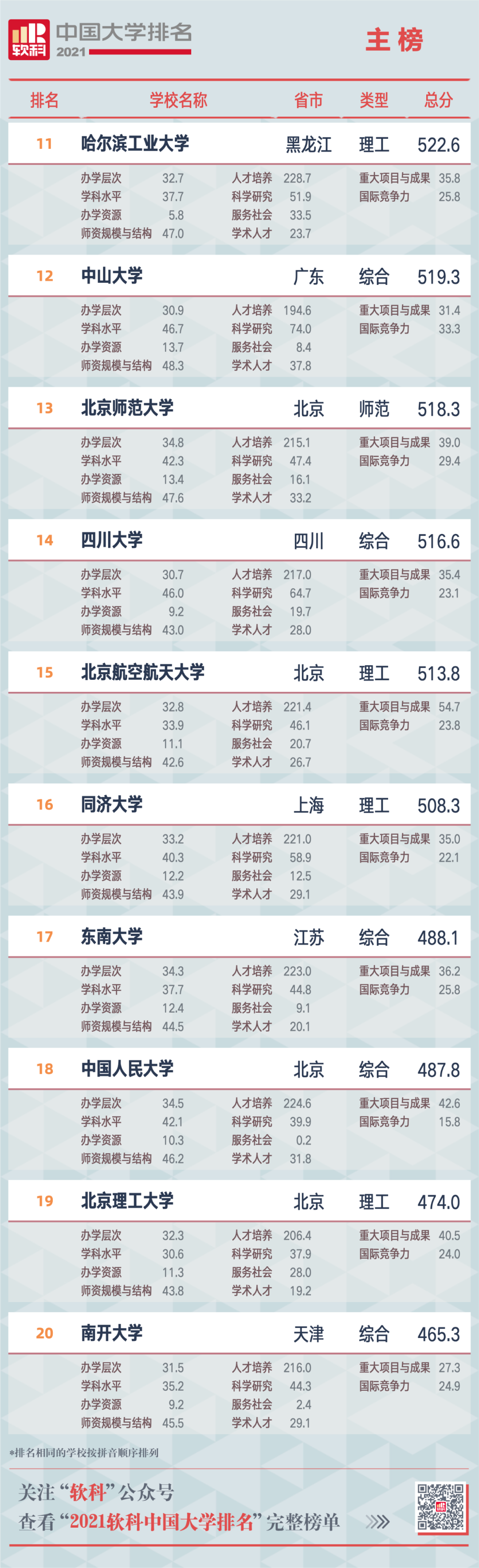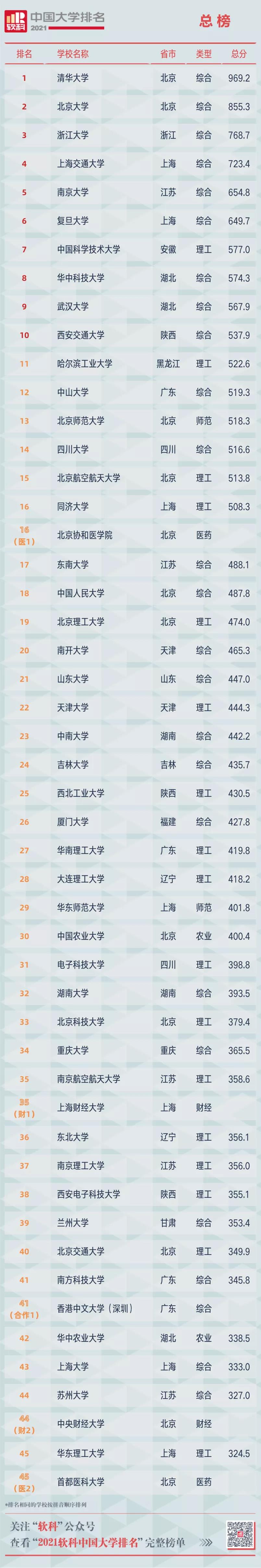 2021軟科中國(guó)大學(xué)排名(總榜)