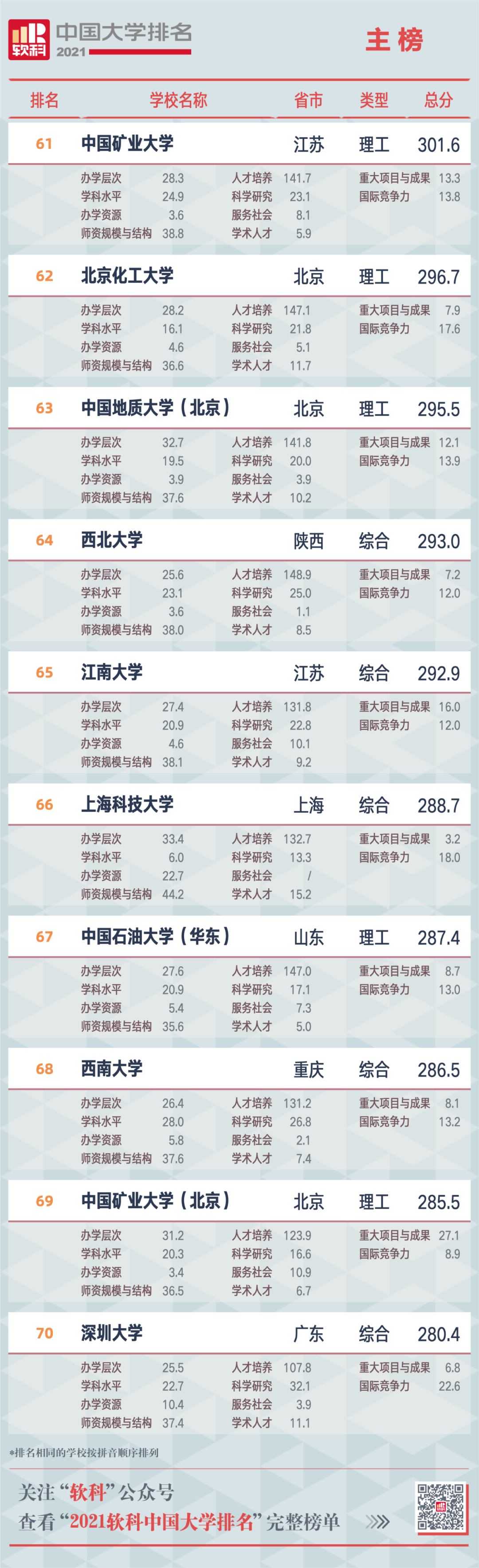 2021軟科中國(guó)大學(xué)排名(主榜)